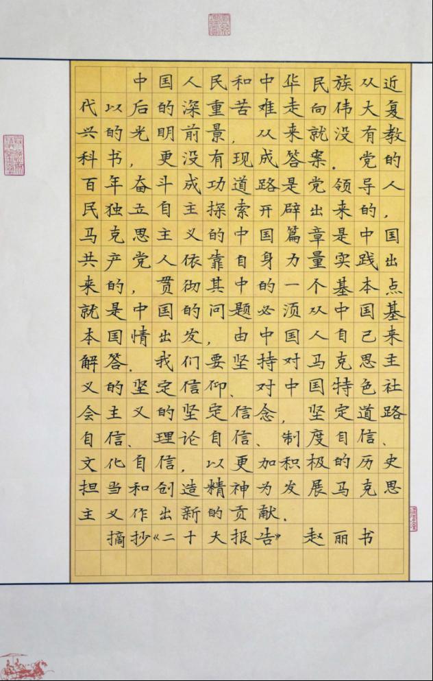 本网讯(通讯员 汤艺 袁俊/文 李郁/图)为深入学习贯彻党的二十大精神,激发师生的爱党爱国之情,弘扬中华优秀传统文化,落实立德树人根本任务,展现师生艺术风采,根据国家开放大学《关于举办“学习二十大 奋进新征程”师生书法大赛的通知》文件要求,湖北开放大学发布《关于在全省开大体系开展“学习二十大 奋进新征程”师生书法大赛的通知》,全省开大体系各办学单位于4月10日至5月31日举办了师生书法大赛初赛和选拔赛活动。本次活动受到各办学单位校领导高度重视,积极发动师生热情参赛,全体师生报名踊跃,热情高涨,参与度高。通过书法大赛活动,学校组织师生深入学习领会党的二十大精神,激发师生的爱党爱国之情,弘扬中华优秀传统文化,落实立德树人根本任务,展现了开放教育师生艺术风采,将理想信念教育、爱国主义教育、社会主义核心价值观等与书法教学有机融合,构建“思政教育、传统文化、学习实践”三位一体的协同育人模式。