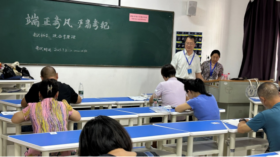 为严肃考风考纪,学校推出一系列举措,筑牢考试防线。教务处编制印发《考试工作手册》和《巡考工作手册》,规范考试管理工作,全面加强考试标准体化系建设。实施考点三级管理巡蹲考机制,划分12个片区,选派副处以上干部担任组长,严格要求片区巡考人员在7日前抵达各考点,与考点主考联合召开考试工作会、考前培训会及考后总结会。对标《巡考工作手册》,逐条逐项开展工作监督检查,把好7个关口(考点入口关、三证核查关、手机关、试卷保密关、人脸识别核验关、环境营造关、舆情监控关),确保考点考试工作的严格落实。省校及各市州考点分级成立考试“人脸识别”和“考场视频远程监控”工作组,开展过程监控及时检查和反馈。