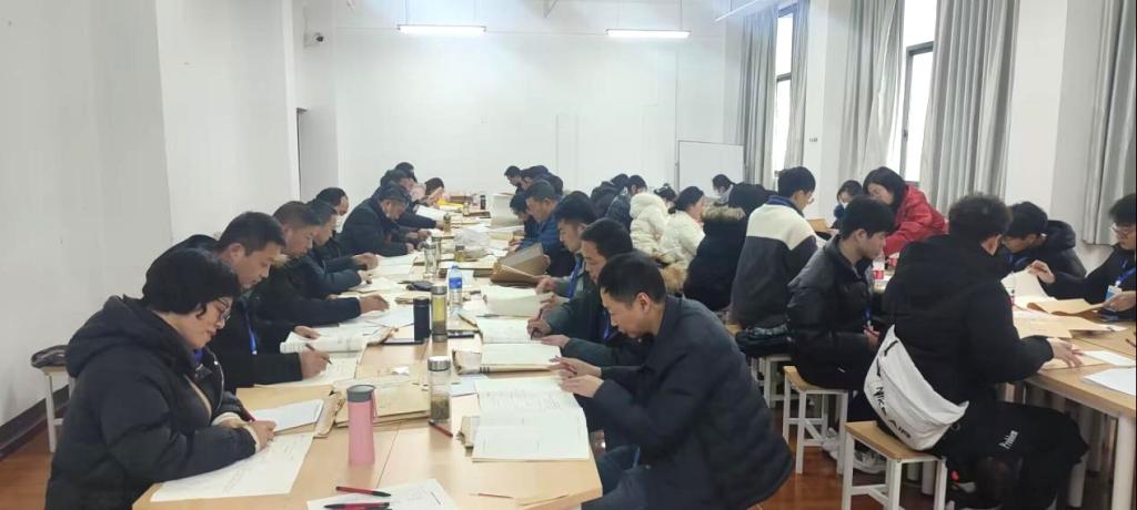 体系教师分组参与评阅工作现场