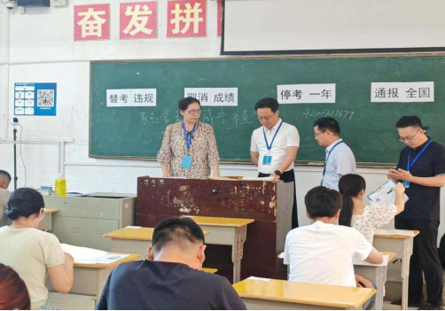 考试过程中,各考点监考人员认真履职尽责,严格落实各项要求,严把入口排查,坚决杜绝夹带资料、携带手机到座位等考试违规现象。对考生进行人脸识别身份核验和签到管理,省校及各市州考点分级成立考试“人脸识别”和“考场视频远程监控”工作组,开展过程监控及时检查和反馈,严格防范和查处替考行为。