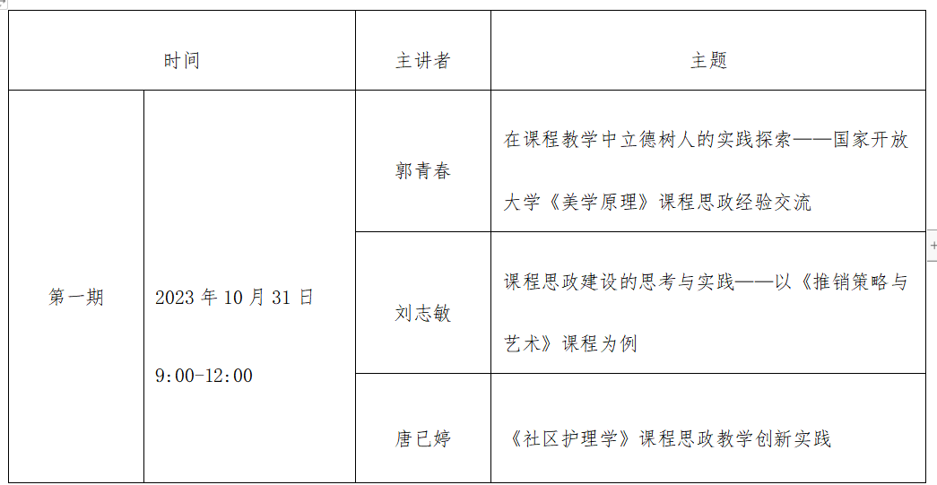 为贯彻落实教育部职成司《关于做好继续教育课程思政示范项目宣传推广有关工作的通知》《国家开放大学关于推进课程思政建设的若干意见》文件精神,根据国家开放大学《关于组织收看国家级课程思政示范项目建设成果展示与交流活动的通知》工作要求,请各教学单位组织观看国家开放大学开展的国家级课程思政示范项目集中展示与研讨交流活动。现将有关事项通知如下: